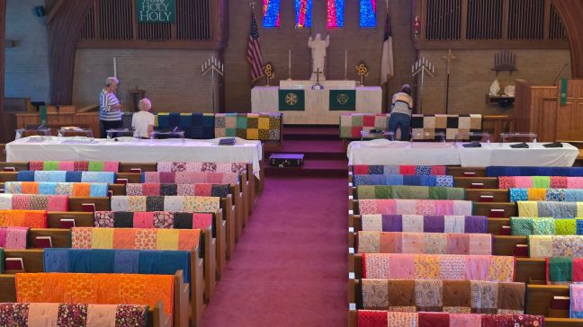 129 Quilts donated to Lutheran World Relief were delivered Oct. 2025.